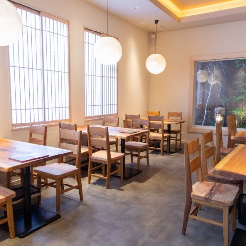 4名様テーブルを計8卓ご用意しており、そのうち2卓は連結してご利用いただける半個室仕様となっているほか、2名様テーブルも2卓完備しております。日常のお食事から大切な記念日やご会食まで幅広くご利用いただけます。